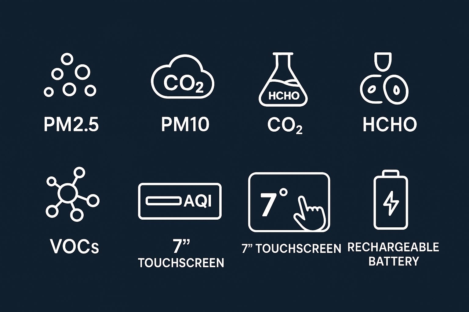Its large 7-inch color touchscreen display makes it easy to view multiple readings simultaneously, while intuitive graphs and indicators help you analyze trends at a glance. The built-in smart alert system warns when pollution levels rise, ensuring immediate awareness.
